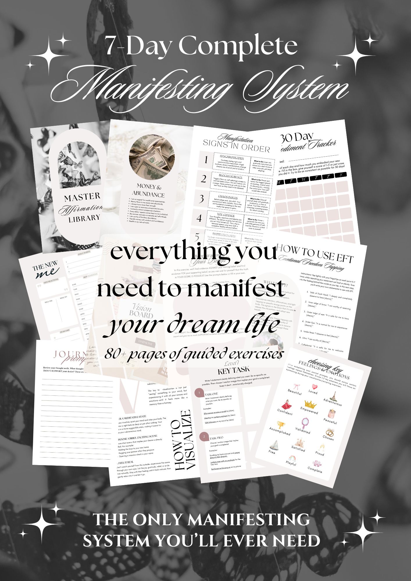 The COMPLETE manifestating system is over 80+ pages of exercises and guides designed to guide you through every step of the total embodiment process. This masterclass & workbook is your complete system to manifest your dream life ONCE AND FOR ALL!